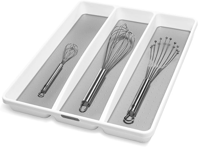madesmart Classic Large Utensil Tray, Soft Grip, Non-Slip Kitchen Drawer Organizer, 3 Compartments, Multi-Purpose Home Organization, BPA Free, White