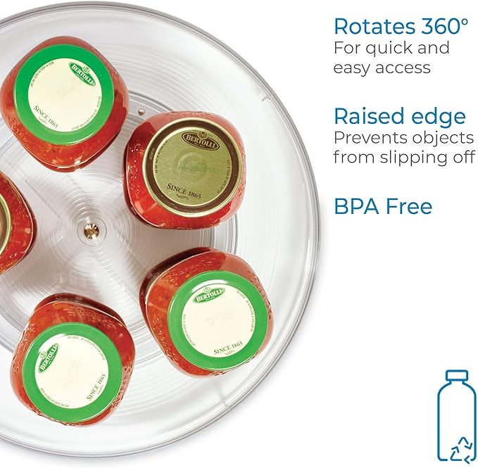 - LAZY SUSAN FOR REFRIGERATOR – Streamline your kitchen organization with the iDesign Recycled Plastic Clear Lazy Susan Organizer; it’s a quick and easy addition to your refrigerator, pantry or cabinet that will bring functional beauty and organized style