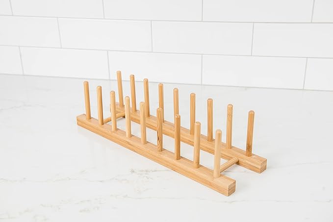 Lipper International 887 Bamboo Wood Plate Rack and Pot Lid Holder, 15-3/8" x 4-3/8" x 4"