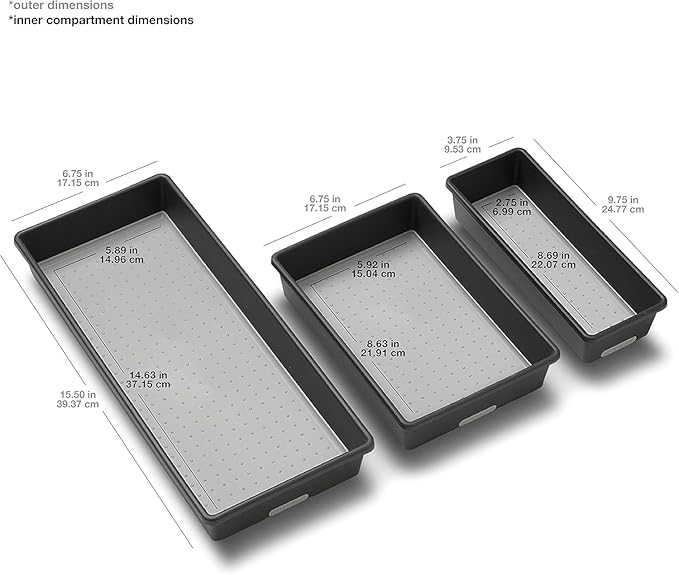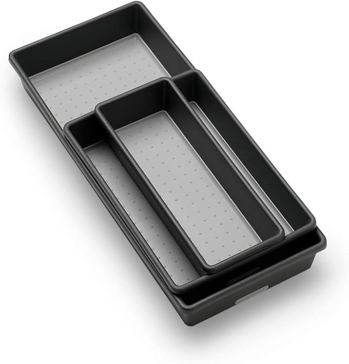 - EFFICIENT DESIGN: Simple 1-compartment design of the assorted size bins makes it easy to create your own personalized organizational system to fit in any drawer throughout your home