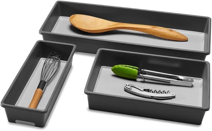 madesmart Classic 3-Tray Bin Pack - Granite | CLASSIC COLLECTION | Multi-Purpose Storage | Soft-grip Lining and Non-slip Rubber Feet | Durable | BPA-Free