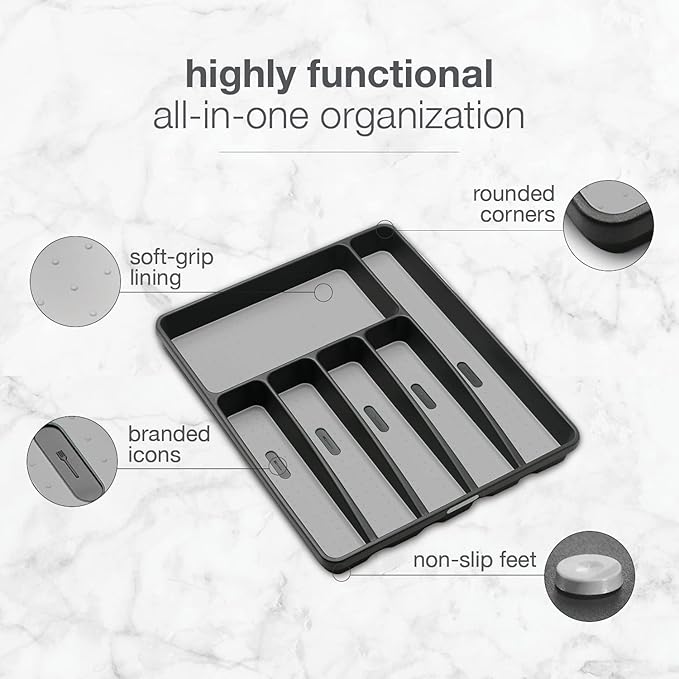 madesmart Classic Large Silverware Tray - Granite |CLASSIC COLLECTION | 6-Compartments| Kitchen Drawer Organizer | Soft-Grip Lining and Non-Slip Rubber Feet | BPA-Free