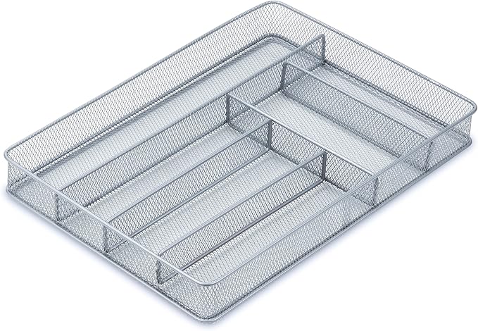 - Special Feature : Your kitchen drawers can become quite disorganized, but not for long. This 6-compartment drawer organizer fits all your standard flatware neatly in its own place and still has room for larger items such as serving spoons, spatulas, and more. The mesh construction is easy to clean and the low 2-inch height profile makes it a great desk drawer organizer, too. Your kitchen drawers can become quite disorganized, but not for long. This 6-compartment drawer organizer fits all your standard flatware neatly in its own place and still has roo… See more