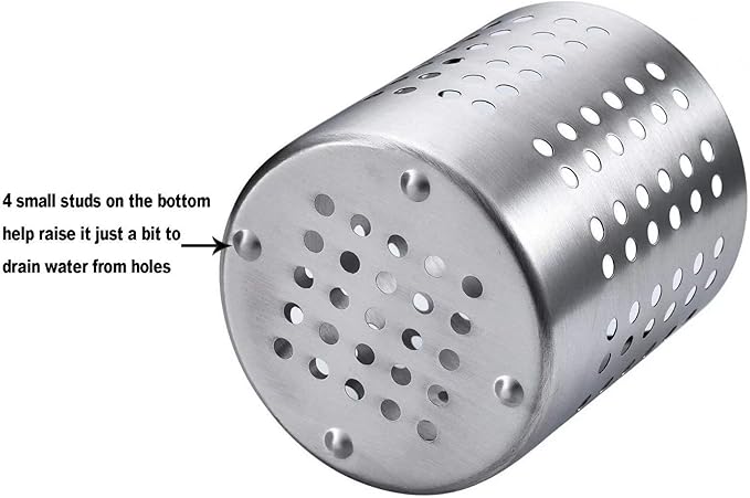 - Elegant Design for Any Kitchen: Transform your countertop with our round stainless steel utensil drying holder. Its sleek silver finish complements any kitchen decor, blending functionality with modern aesthetics