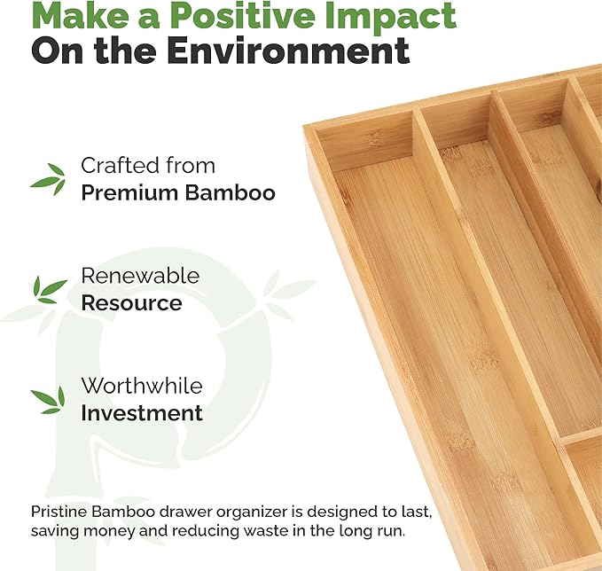 - SUPERIOR DESIGN SOLUTIONS: The only bamboo drawer organizer that offers all-in-one features: 100% bamboo (even the base), No Toxic MDF, Slip-resistant, Extra Depth, Strong & Durable Construction. This is undoubtedly the best drawer organizer available and our reviews are the testament of the quality.