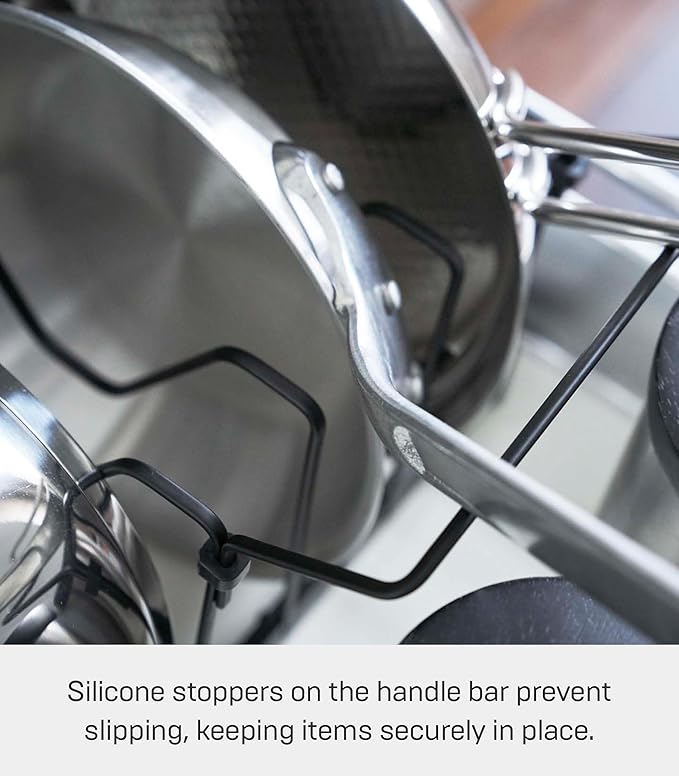 Yamazaki Home Adjustable Lid & Pan Organizer - Kitchen Drawer Storage Shelf Rack Steel One Size Black