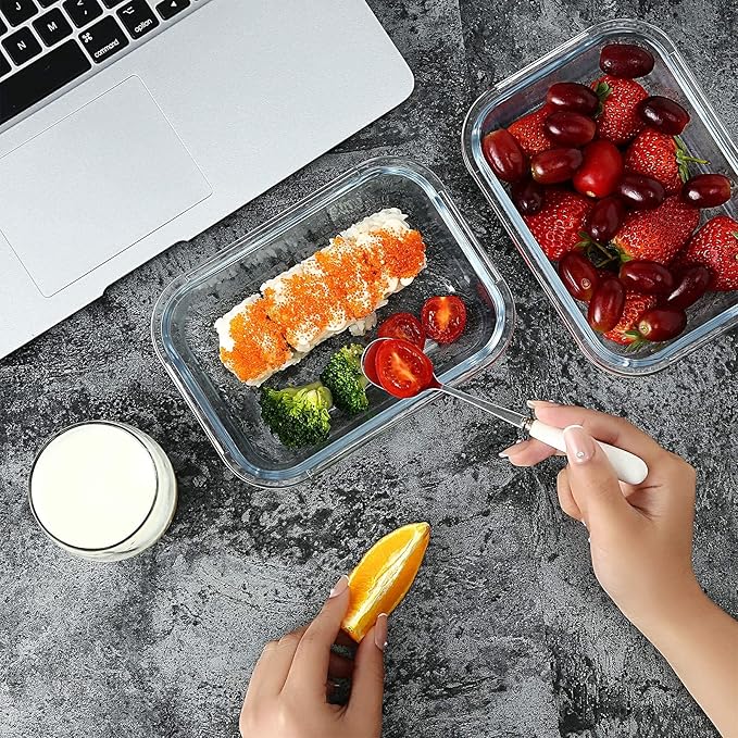 - PERFECT MULTIPURPOSE:Do you want to save time and money or just prefer home cooking over fast food? Glass food storage containers with locking lids are perfect for you. Durable and easy to use, these glass containers encourage you to cook at home and eat healthier food meal prep and easy transportation when you want to take your containers to travel, work, the gym, picnics and school lunches, or any other situation that you can have a mind.