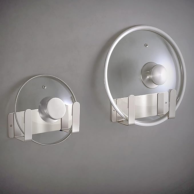 Pot Lid Rack, Wall Mounted 304 Stainless Steel Pan Lid Organizer Holder, Self Adhesive, Kitchen Cooking Utensil Tool (Silver)