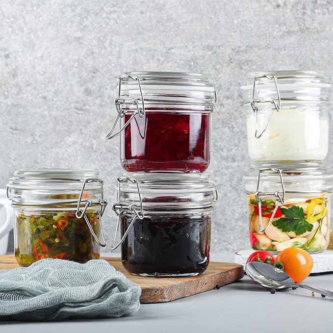 - Airtight lids with silicone seal keep contents fresh; includes 3 extra silicone gaskets for double stacking jars