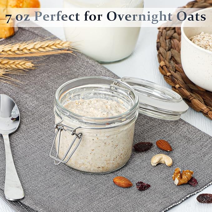 Folinstall 7 oz Glass Jars with Airtight Lids 12 Pcs, Small Mason Jars with Hinged Lids for Kitchen Storage, Canning and Pantry, Includes 3 Replacement Silicone Gaskets and Chalkboard Labels