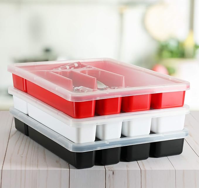 Flatware Tray with Lid, Plastic Camper Picnic Cutlery and Utensil Drawer Organizer, Kitchen Silverware Storage Container with Cover, White