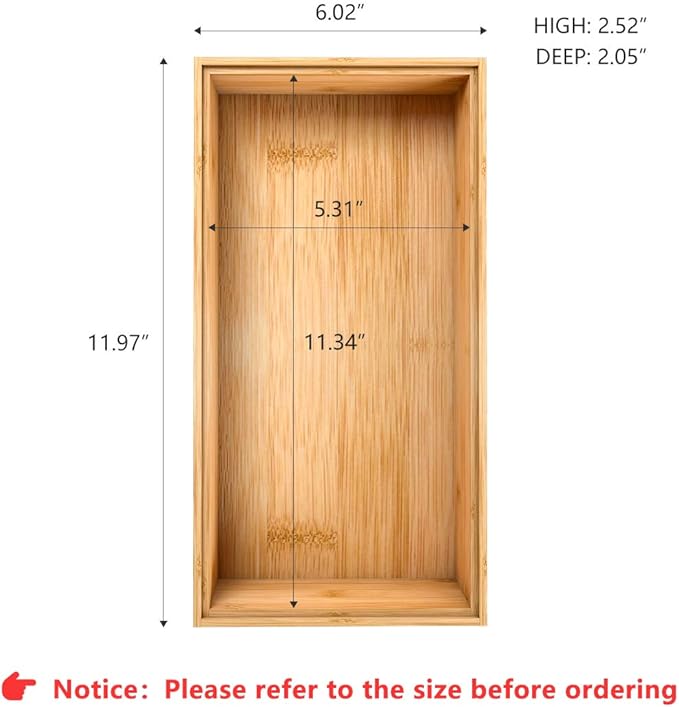 - STACKABLE DESIGN: when you organize the desk or higher drawers,the stackable bamboo box will save more space for you