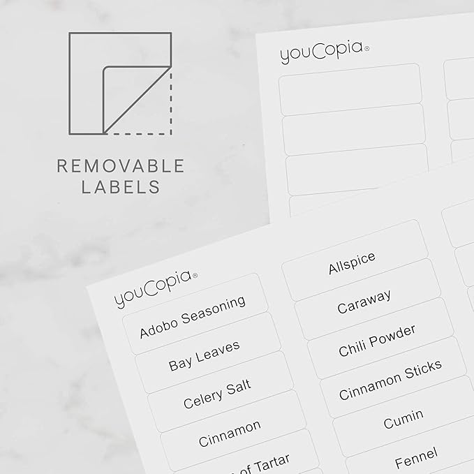 - FAST FINDING: Each SpiceStack includes 104 (52 printed and 52 blank) removable drawer labels for custom organization and an even faster find while cooking. Organize alphabetically or by usage/type.