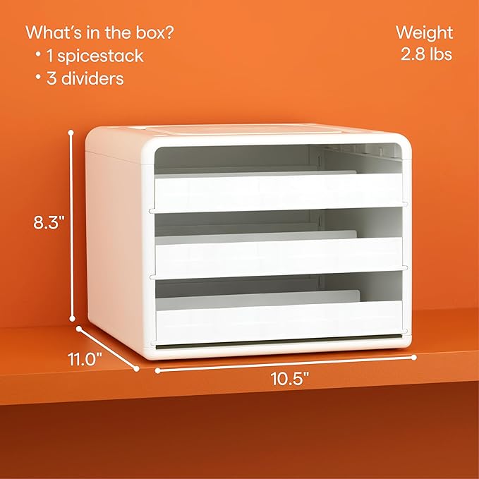 - QUICK SET-UP: Just take SpiceStack out of the box and start loading spices. Your spice bottles will be organized in mere minutes and you’ll never look back! No tools, mounting or installation required.