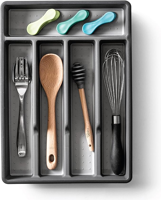 - Easy to Clean: Featuring rounded corners and removable silicone liners, our silverware holder for drawers is easy to clean. Remove the liner and wash it separately. The flatware and utensil storage tray can be washed by hand or in a dishwasher.