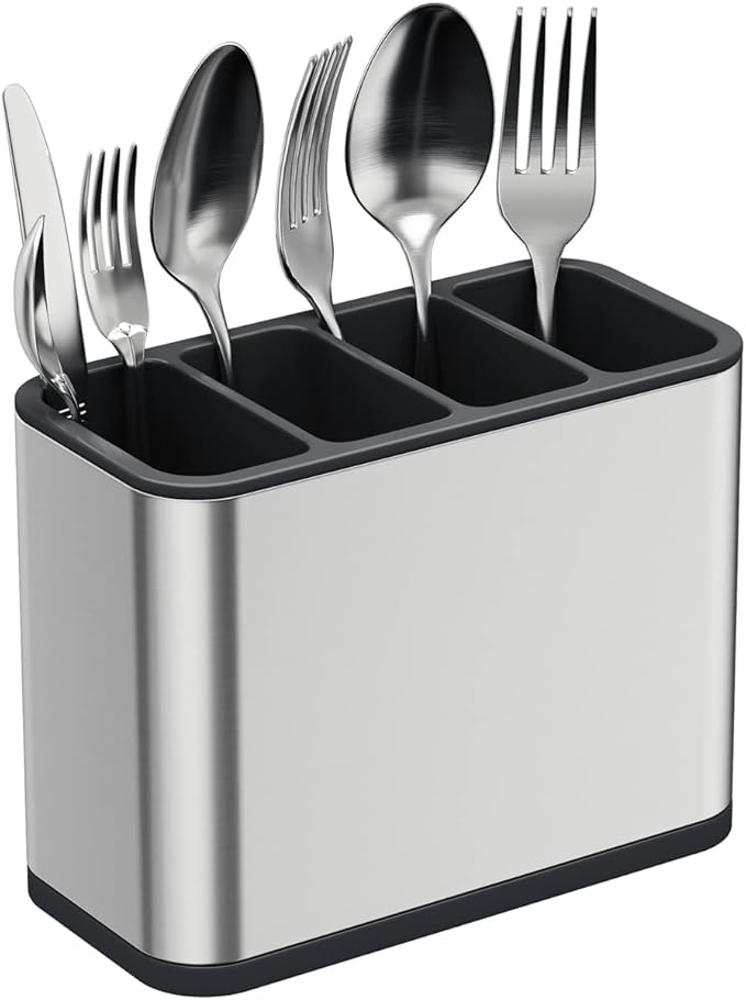 Silverware Caddy Utensil Caddy Spoon Holder with 4 Divided Compartments, Sturdy Stainless Steel, Rust Proof