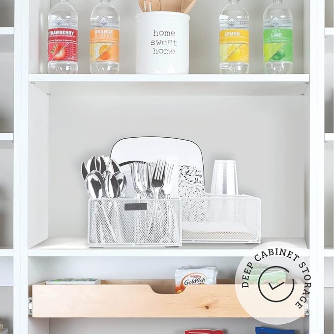 - Stylish and Modern Mesh Design: Enhance your kitchen or dining area with the elegant design of our paper plate organizer and cutlery holder. Its stylish and modern mesh design seamlessly complements any decor while keeping your tableware organized