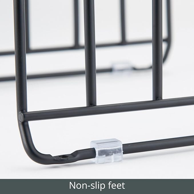 - QUALITY CONSTRUCTION: Made from sturdy steel wire with a durable finish; Plastic feet protect cabinets from scratches and damage and keep the item in place; EASY CARE: Clean with damp cloth