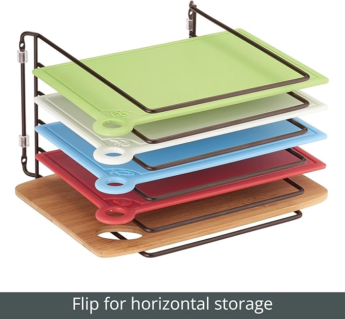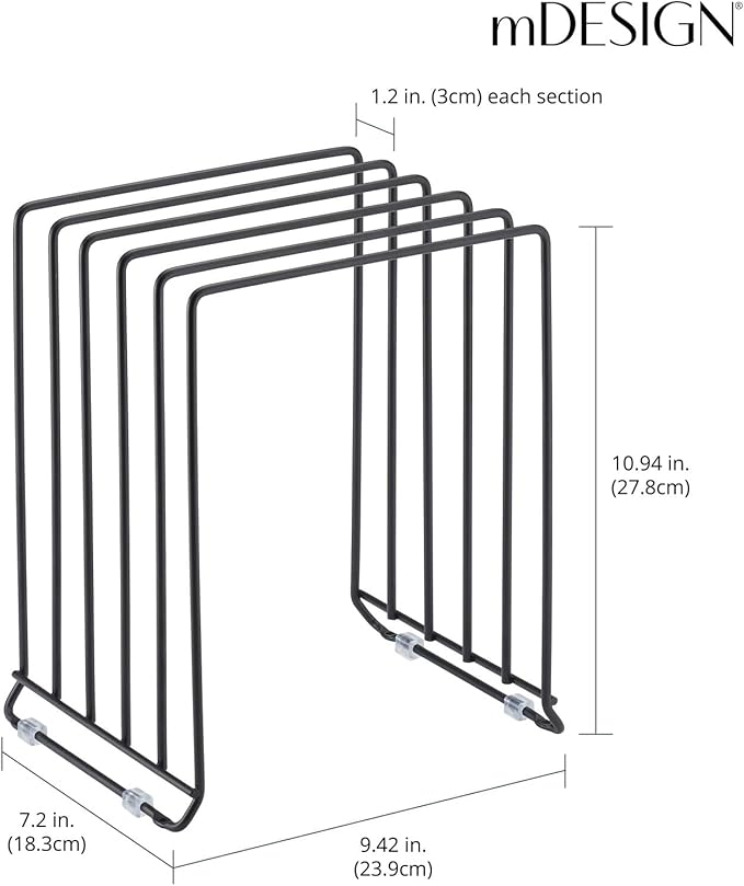 - FUNCTIONAL & VERSATILE: Perfect for cookware, but also use to display or store dishes; Try this item in your home office or craft room to keep construction paper, notebooks, notepads, printer paper, books, and other items organized and easy to find; Great for separating gift bags and tissue paper too; Arrives assembled and ready to use; Hardware is included if you choose to mount to the side or the bottom of your cabinets or shelves