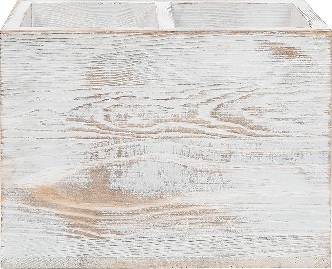 - Kitchen countertop 2 compartment wooden utensil caddy with whitewashed finish, perfect for storing and organizing your essential cooking tools