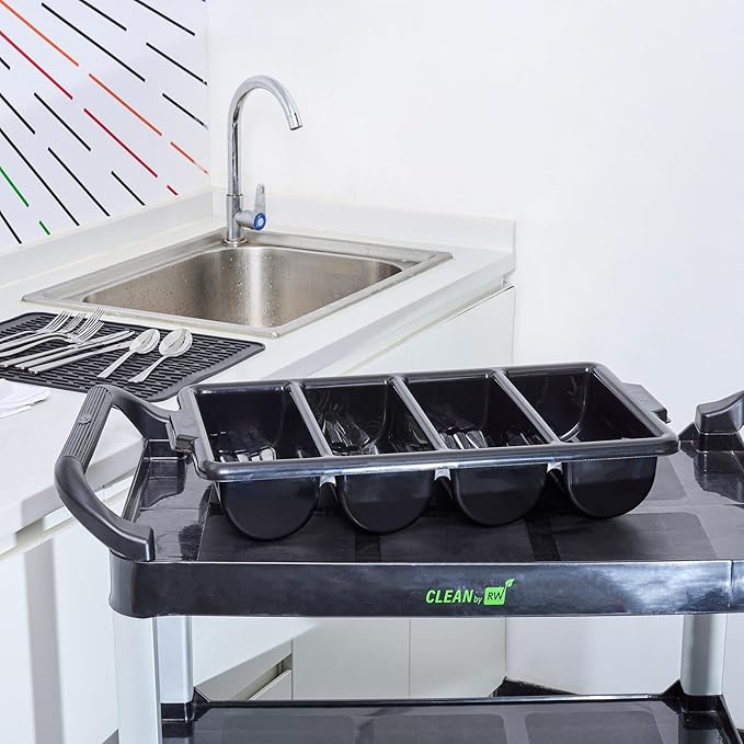 - EASY ORGANIZATION: Featuring a sleek, low-profile design, this cutlery caddy can be used to sort or organize all types of supplies without creating eyesores. Plus, its compact height is easy to store!