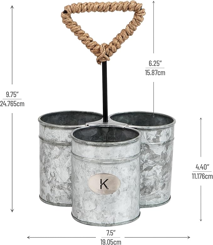Mind Reader Utensil Holder, Silverware Organizer, Caddy, Cutlery Holder, Galvanized Metal, 7" L x 7" W x 10" H, Silver