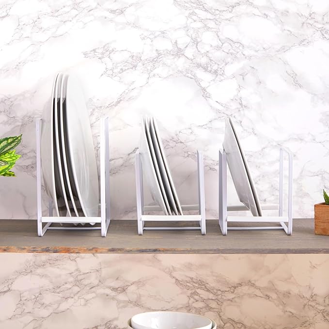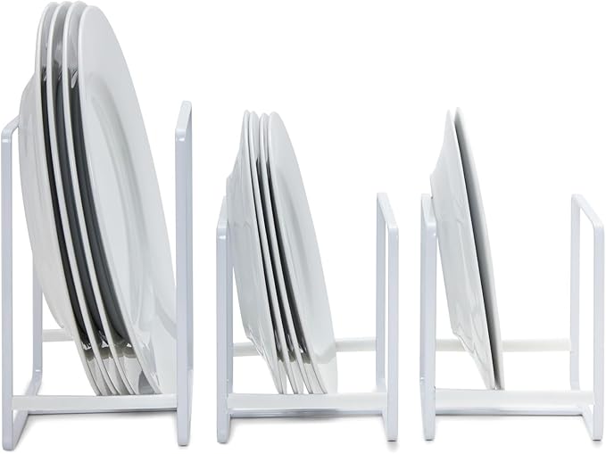Juvale 3 Piece Plate Organizer for Kitchen Cabinet, Shelf, 2 Sizes for Pots, Pans, Cutting Boards (White) - Plate Rack