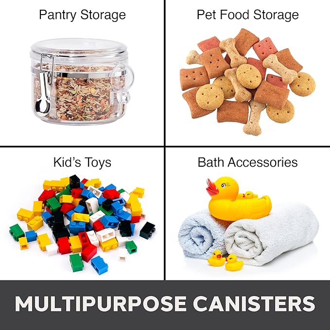 - VERY VERSATILE 28 fl oz CONTAINER: Great for storing cookies, sugar, flour, cereal, pasta, coffee, tea, spices, candy, rice and any other dry kitchen staples. Use the included scoop to help access contents.