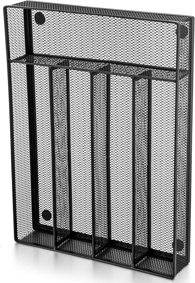 E-far Silverware Drawer Organizer, Mesh Wire Utensil Tray Drawer Organizer for Kitchen, Black Narrow Metal Flatware Cutlery Holder/Divider, 5 Compartment & Small Size - 12.5 x 9.25-Inch