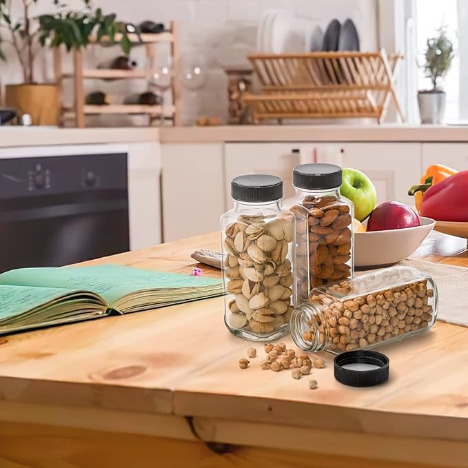 - Our square glass bottles are made of thick, durable glass that will not break easily and also dishwasher safe. Clear glass let you have a clear look of spices.