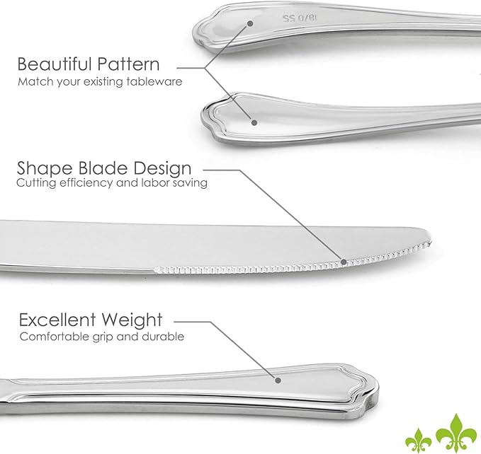 - SOLID AND DURABLE - This silverware set is made of the best 18/0 stainless steel, rust-proof and resistance corrosion resistance, 20% more material, solid and sturdy, not easy to bend in daily use, Excellent weight, not too light nor too heavy, perfect for home daily use or for more formal occasions, like hotels, weddings, parties