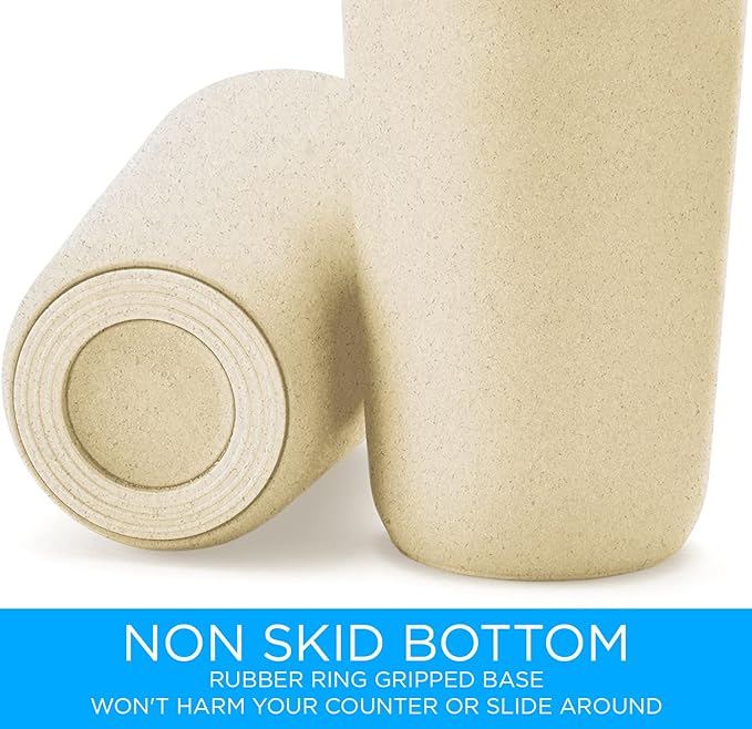- PERFECTLY DESIGNED -Our utensil caddy has a unique modern Scandinavian minimalist design with eco-friendly bamboo that will look stunning on your kitchen counter. Our kitchen utensil holder maintains a rubberized gripped bottom so it won’t stain your counter and will stay in one place during use.