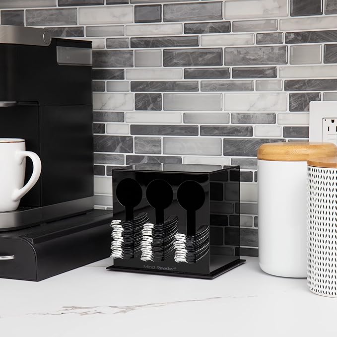 Mind Reader Utensil Dispenser, Silverware Organizer, Plastic Fork and Spoon DIspenser, Kitchen, 7" L x 5.75" W x 6" H, Black