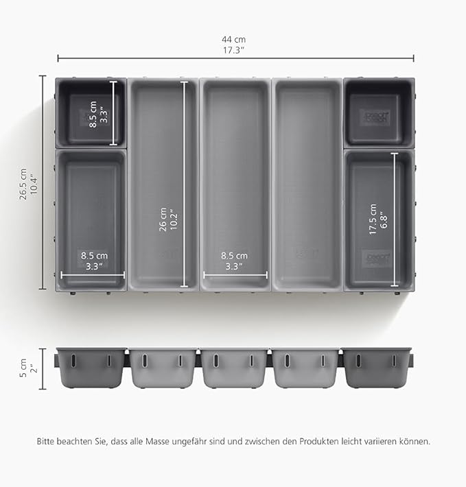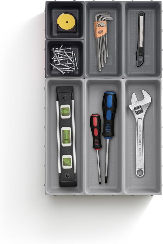 Joseph Joseph Blox 7 Piece Plastic Storage Trays Cosmetics, Stationary, Utensils Drawer Organizer Grey