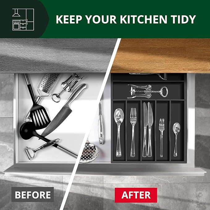 - π§½ππππ ππ πππ, πππ πππππππππππ: Cleanups a breeze with our drawer organizers and storage inserts. Simply apply a warm damp cloth to our flatware tray and wipe it down of any stains or crumbs that might have accumulated. With just about 5 minutes every week, you can keep your organizer looking brand new!