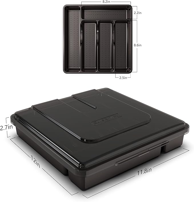 - Easy To Carry: Our covered utensil organizer fits in most kitchen drawers. The clear lid allows you to quickly see the contents inside. Perfect for college dorm rooms, summer houses, picnic and RV's.