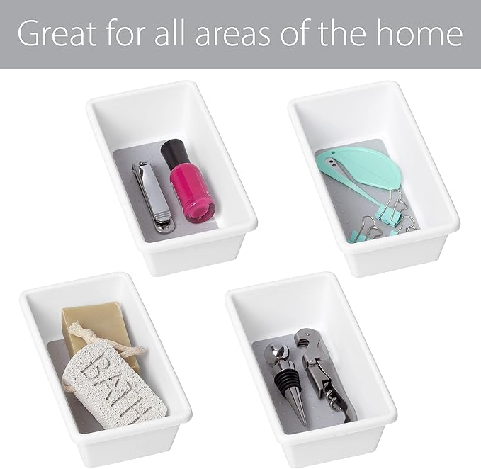 Smart Design Plastic Drawer Organizer - Set of 3-6.75 x 3.75 Inch - Non-Slip Lining and Feet - BPA Free - Utensils, Flatware, Office, Personal Care, or Makeup Storage - Kitchen - White with Gray