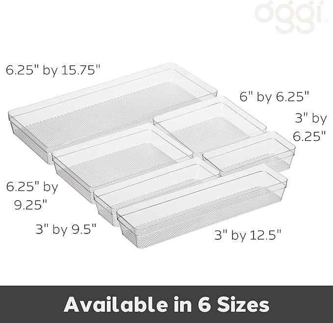 Oggi Clear Drawer Organizer - 6" X 6.25"- Ideal for Organizing Kitchen Drawers, Office, Desk, Silverware, Kitchen Utensils, Cosmetics and Bathrooms