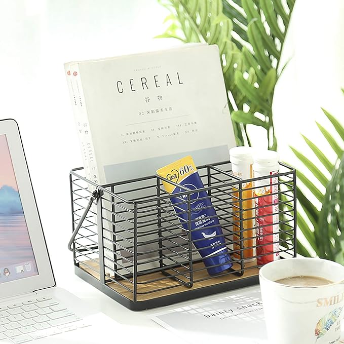 - [WIRE UTENSIL & CONDIMENT CADDY] Basket organizer holds and displays utensils such as spatula, cutlery, ladles, serving pieces, whisks, spoons, forks and knives. Also as napkins holder and condiments holder for seasonings. 4 compartments mesh caddy keeps supplies separated and organized on countertop.