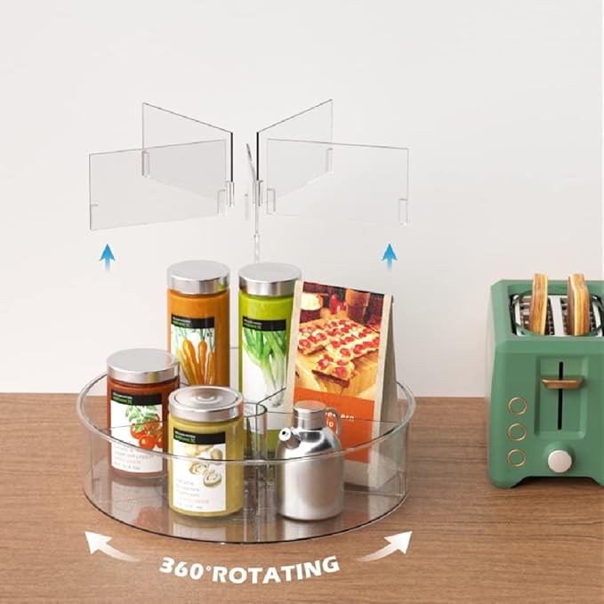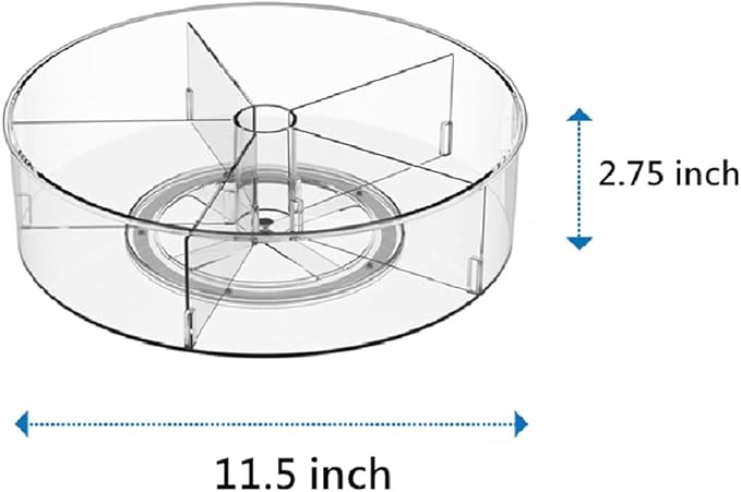 - EASY REACH: This rotating lazy susan organizer tray makes items easy to reach, even when stored on upper shelves. The high outer walls keep items safely in place while the tray is spinning; Use inside kitchen cabinets, on pantry shelves or in the refrigerator; Also great for keeping shampoos, conditioners and other toiletries neatly stored and easily accessible inside a bathroom cabinet or closet.
