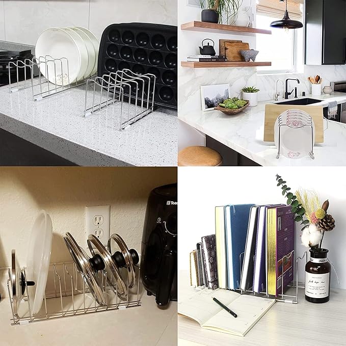 - 【Best Organization Tool】: The lid organizer not only perfect for pot and pans, dishes, baking trays, cutting boards, or grills, but great for books, notebooks and files which make your life more tidy.