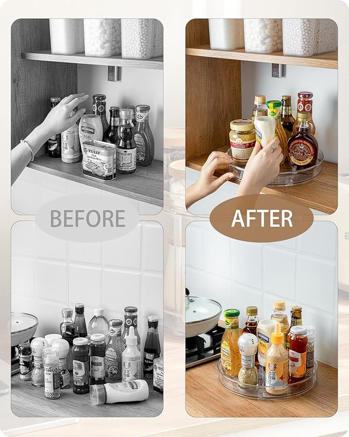 Roninkier Clear Lazy-Susan Turntable Cabinet-Organizer – 2-Pack 9-Inch Spice Rack Storage for Fridge Refrigerator Pantry