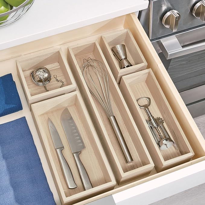 iDesign Renewable Paulownia Wood Collection Drawer Storage Organizer Bin, 3.3" x 5" x 2.5", Natural