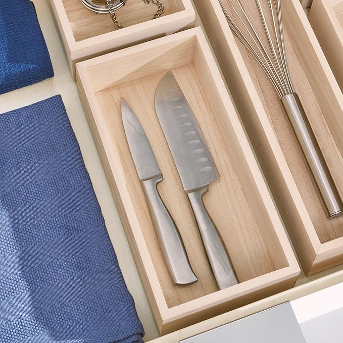 iDesign Renewable Paulownia Wood Collection Drawer Organizer Bin, 5" x 10" x 2.5", Natural