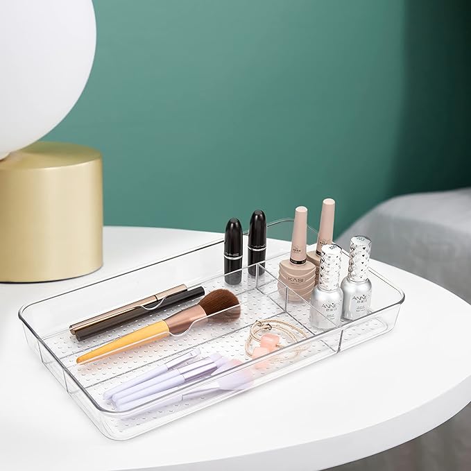 - 【Stunning Design】You always have your commodities in view and readily available thanks to the modern, deliberately transparent design. The particle design at the bottom is for non-slip, and its size is also carefully designed so that it can be placed in drawers and cabinets of various sizes, or on any countertop