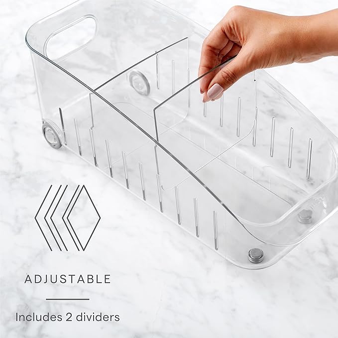 - ORGANIZING YOUR WAY: Two removable, adjustable dividers create perfectly-sized compartments for all your fridge staples.