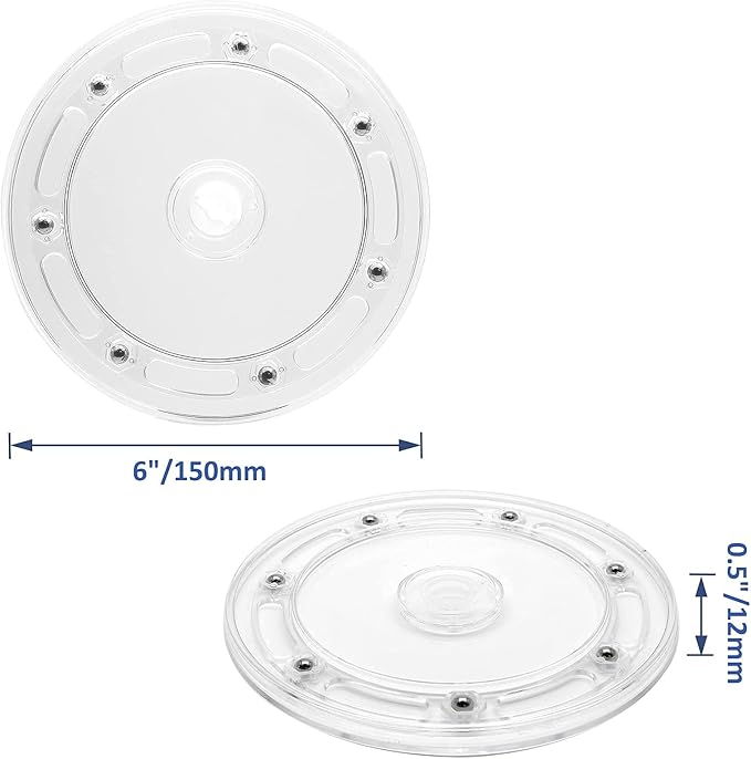 - 【Package & Specification】The package comes with 1 pcs small turntable organizer. The outside diameter: 6 inch / 150mm; Swivels: 360°; Thickness size: 1/2 inch / 12mm. Color: Clear. Even if the weight of item reach more than 20kg/44lb., it still can rotate smoothly. To meet your daily need.