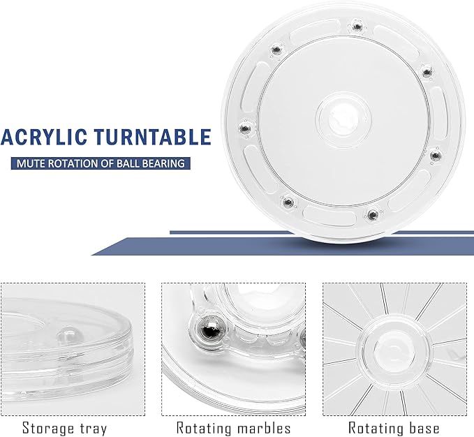 - 【Premium Acrylic】 Our small Turntable is made of high quality Acrylic, which is durable and can be used for a long time. It is environment friendly, safe for foods, harmless to the body. Easy to clean. With strong load bearing, steel ball bearing for rotation long lasting.