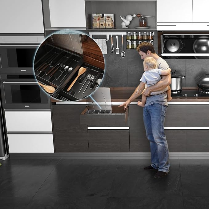 - [Keep you more healthy]This kitchen drawer organizer with cover lip is dustproof.Not only maximize your kitchen space,but also provide a clean and sterile kitchen environment.