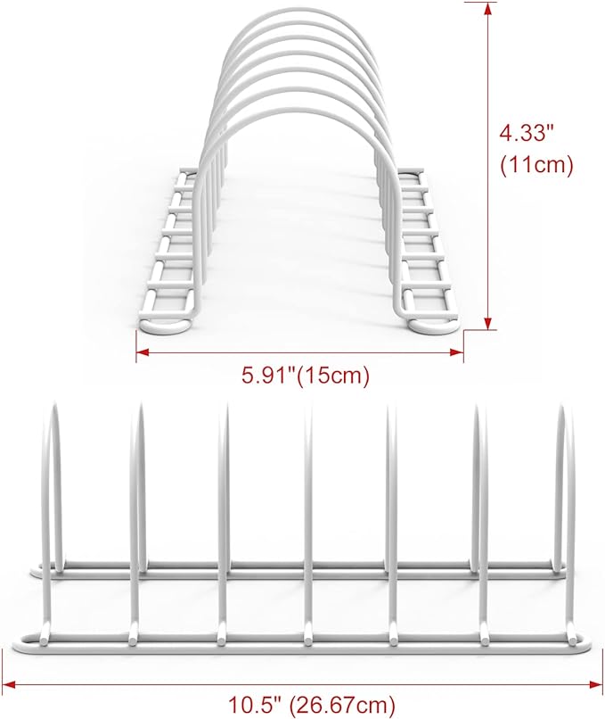 JAQ Pot Lids Holder, 10.5" Kitchenware Dividers Organizer for Plates, Pans, Cutting Boards, Muffin Tins, Baking Sheets in Cabinets Shelf Countertop Pantry (2-Pack, White)